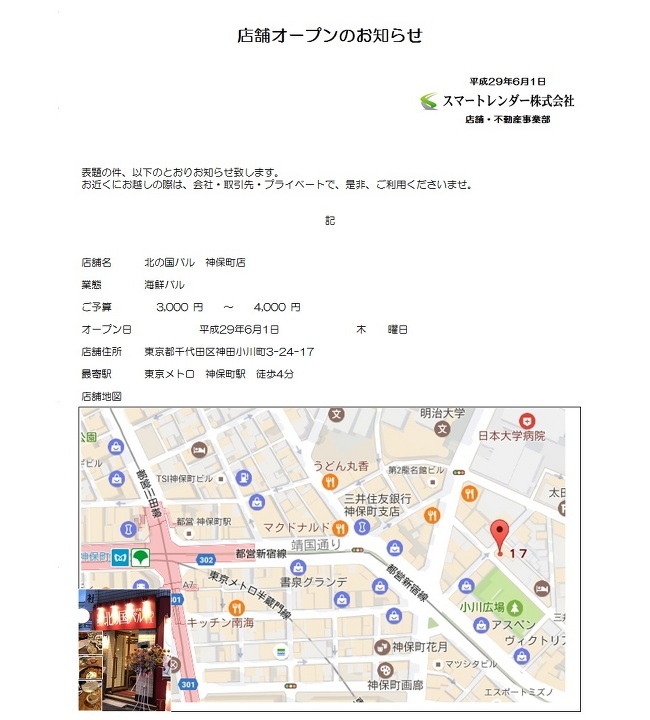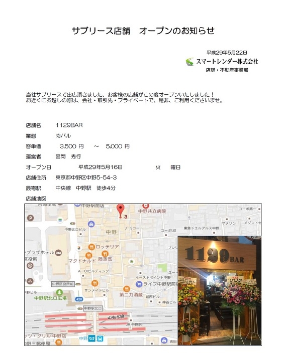 サブリース新店舗オープンのお知らせ (2017/06/02)