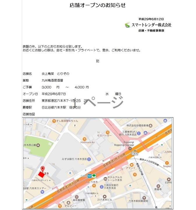 サブリース新店舗オープンのお知らせ(六本木) (2017/06/12)